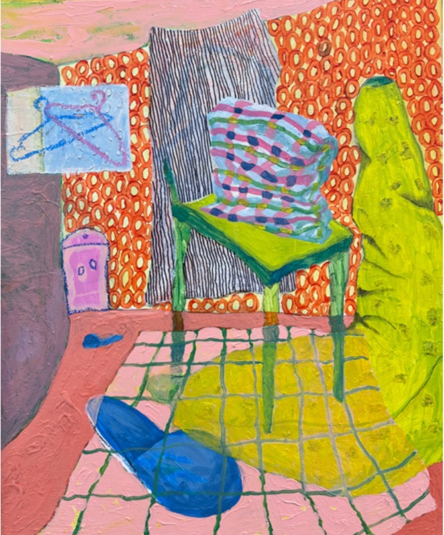 盧宛萱,《房間的角落之一》(壓克力、蠟筆;73 x 61cm;2025;畫廊:國立臺灣藝術大學美術系)